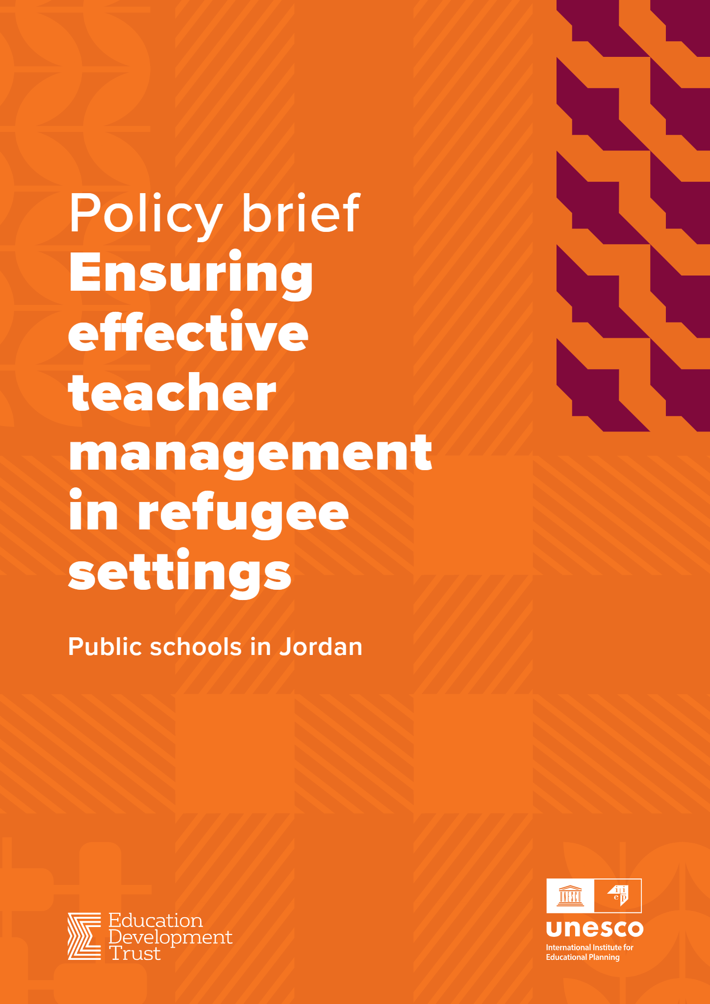 وفي عام 2022، نشرت منظمة Education Development Trust ومعهد اليونسكو الدولي للتخطيط التربوي موجز للسياسة العامّة يقدّم توصيات قائمة على الأدلة في مجال السياسات بشأن الإشراف الفعّال على المعلمين في المرحلة الابتدائيّة في المدارس الرسمية التي تخدم اللاجئين السوريين في الأردن. وقد صُمِّمَ هذا الموجز لمساعدة وزارة التربية والتعليم والجهات الفاعلة الرئيسية الأخرى على مستويات مختلفة من الحوكمة في وضع سياسات لإدارة المعلمين وتنفيذها بهدف تعزيز إدارة المعلمين في السياقات المرتبطة باللاجئين.