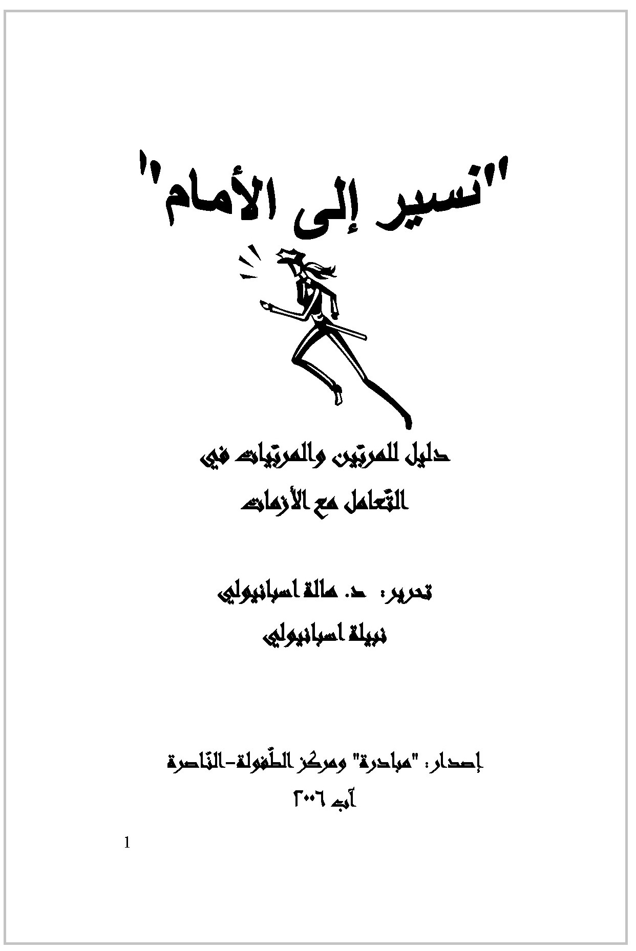 هذا الدليل هو لدعم المربّين والمربّيات للتّعامل مع الأزمات: "نسير للأمام" ويركّز هذا العمل مركز الطّفولة أيضًا بالتّعاون مع الشركاء في "مبادرة" خاصّة لجنة متابعة قضايا التّعليم العربيّ ورابطة السيكولوجيّين العرب