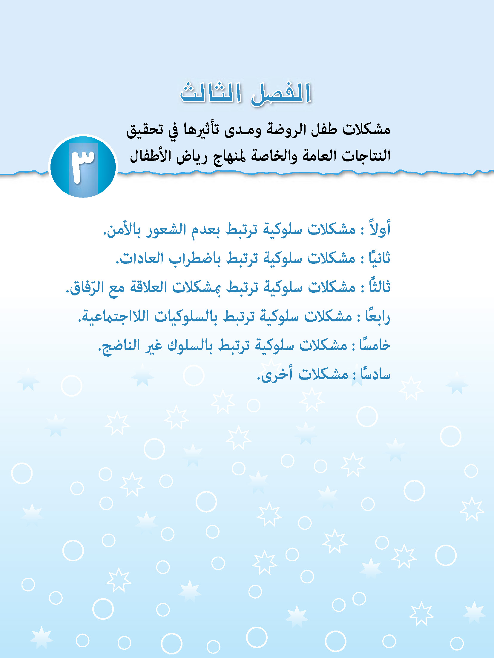 يقدّم هذا الفصل وصفًا مفصّلًا عن مشكلات طفل الروضة أسبابها وطرق التعامل معها