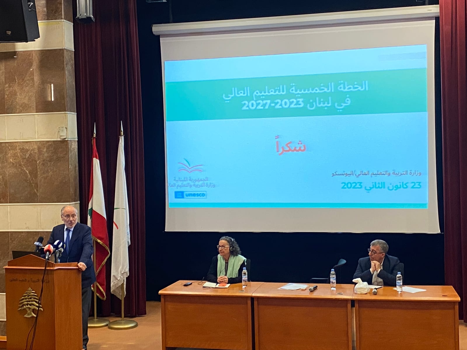 On 23 January 2023, on the occasion of the United Nations International Day of Education, the Ministry of Education and Higher Education (MEHE) in Lebanon launched its five-year Higher Education Plan 2023-2027, in partnership with the UNESCO Regional Bureau for Education in the Arab States (UNESCO Beirut), at the Ministry’s Theater Hall.