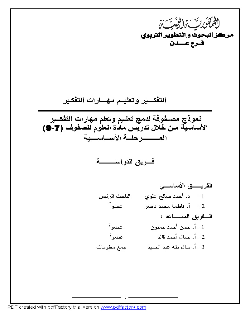 يهدف هذا الدليل الى مساعدة المعلم في تنظيم خطوات واجراءات تعليم مهارات التفكير المختلفة من خلال تدريس المادة الدراسية المقررة التي يقوم بتدريسها